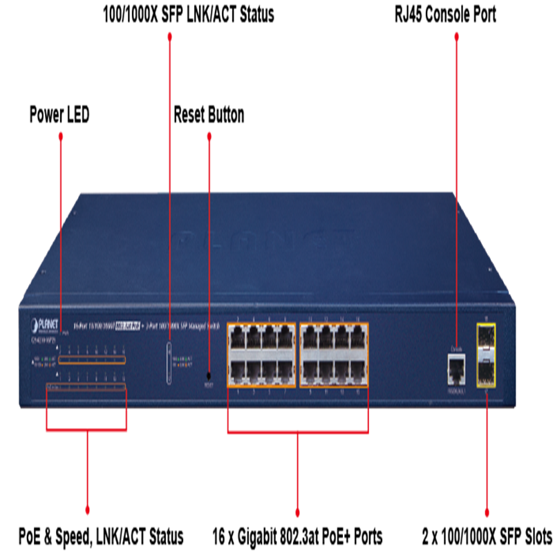 Switch PoE PLANET GS-4210-16P2S – Giải pháp mạng thông minh, hiệu suất cao